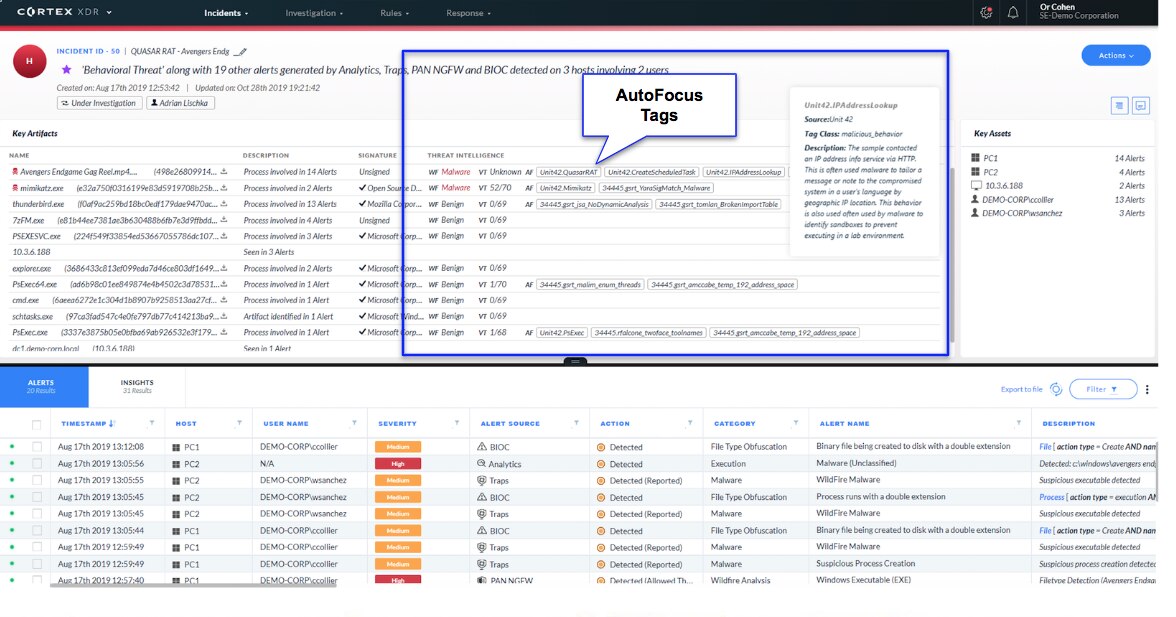 AutoFocus datasheetSupercharge your prevention, detection, investigation and response efforts with AutoFocus™ threat intelligence embedded in Cortex XDR’s game-changing unified incident engine.