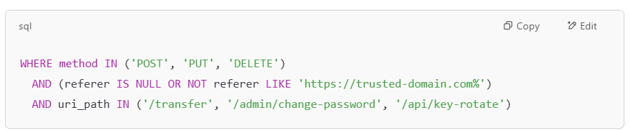 A CSRF compromise may not leave a clear intrusion trail. Traditional indicators like brute-force attempts or malware signatures won’t appear. Investigation should focus on: