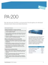 Key features, performance capacities and specifications for the Palo Alto Networks PA-200.