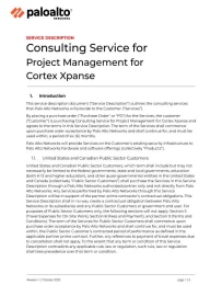 This service description document (“Service Description”) outlines the Palo Alto Networks service for a new Consulting Service for Project Management for Cortex Xpanse.