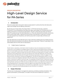 This service description document (“Service Description”) outlines the Palo Alto Networks High-Level Design service offering for PA-Series (“Service”).