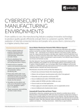 Protect against Industry 4.0 attacks with integration and automation. From cookies to cars, the manufacturing industry employs innovative technology to produce quality goods efficiently and get them to customers quickly. With the explosion of internet-connected devices and people who access them, cybersecurity is a higher priority than ever.